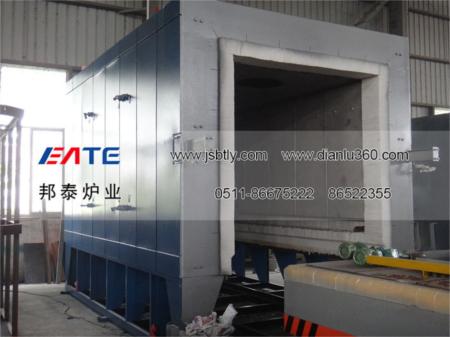 全纖維臺(tái)車爐為全纖維臺(tái)車式電阻爐,工件加熱時(shí),將臺(tái)車開出爐體外,將工件擺放在臺(tái)車上。