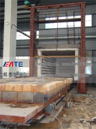 5、臺(tái)車耐火砌體采用高鋁定型磚結(jié)構(gòu),與爐體密封效果好,耐壓強(qiáng)度高。臺(tái)車面擱置墊鐵供堆放工件用。臺(tái)車幫板全部采用澆筑件,保證車體不變形及耐用性。爐車與爐襯的密封采用耐火纖維密封塊電動(dòng)推桿自動(dòng)壓緊結(jié)構(gòu)。側(cè)密封的開、閉與爐車進(jìn)出連鎖。