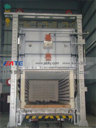全纖維臺(tái)車爐由爐體(包括爐襯)、爐門、爐車、爐門起吊機(jī)構(gòu)、爐車行走機(jī)構(gòu)、加熱元件、溫控系統(tǒng)、溫度記錄等部分組成。